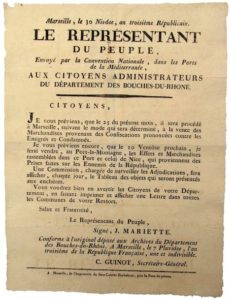 BOUCHES DU RHÔNE. 1795. « Le Représentant du peuple MARIETTE envoyé dans les Ports de la …