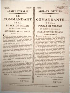 ARMÉE D’ITALIE. 1800. SIÉGE DE MILAN. Placard bilingue : Adresse de NIVET le Commandant de la …