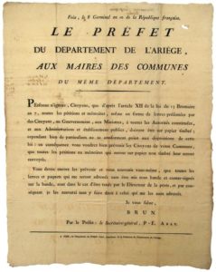 ARIÈGE. 1802. POSTE AUX LETTRES. Avis de BRUN, Préfet du département de l’Ariège, aux Maires …