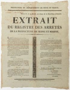 SEINE-ET-MARNE. MELUN (77) 29 Floréal An 12 (19 Mai 1804). Extrait du registre des Arrêtés de …
