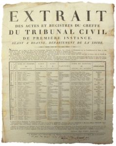 1810. LOIRE. TRIBUNAL CIVIL. Extrait des actes du Greffe du Tribunal Civil de Première Instance, …