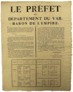 VAR. 1811. EMPIRE. Arrêté de d’AZÉMAR Préfet du Var, Baron de l’Empire, relatif à la …