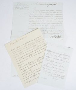 — L.S. de Thomé, datée du 6 juillet 1786, 2 pages in-12, cachets de cire noire. Il semble que cette lettre ait servi de brouillon au brigadier Thomé pour sa réponse au maréchal de Castries, le remerciant d’avoir obtenu du roi une pension pour le sieur Thomé mort à Sainte-Lucie.