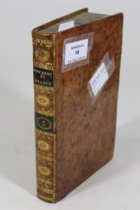 YOUNG Arthur. Voyages en France pendant les années 1787-88-89. Entrepris plus particulièrement pour s'assurer de l'état de l'agriculture, des richesses, des ressources et de la prospérité de cette nation... Traduit de l'anglais par F.S. avec des notes et observations par M. de Casaux et des cartes géographiques de la navigation et du climat. A Paris chez Buisson, 1793. Tome I.