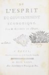 BOESNIER DE L'ORME (Paul). De l'esprit du gouvernement économique. Paris, Delalain, 1775. In-8, …