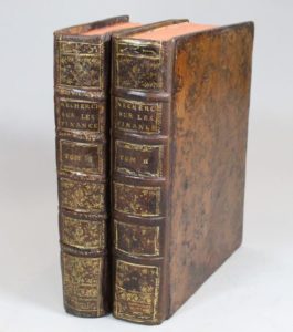 [FORBONNAIS (François Véron de)]. Recherches et considérations sur les finances de France, depuis l'année 1595 jusqu'à l'année 1721. Bâle, Aux dépens des frères Cramer, 1758. 2 volumes in-4, veau marbré, dos orné, tranches rouges (Reliure de l'époque).
