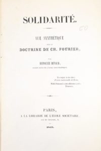 FOURIER (Charles). - RENAUD (Hippolyte). Solidarité. Vue synthétique sur la doctrine de Ch. …