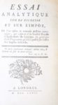 [GRASLIN (Jean-Joseph-Louis)]. Essai analytique sur la richesse et l'impôt, Où l'on réfute la nouvelle doctrine économique, qui a fourni à la Société Royale d'Agriculture de Limoges les principes d'un Programme qu'elle a publié sur l'effet des Impôts indirects. Londres, s.n., 1767. In-8, veau granité, dos lisse richement orné, tranches rouges (Reliure de l'époque).