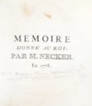Relié en tête, du même : Mémoire donné au Roi. En 1778. S.l.n.d. [1781]. (1 f. de titre, II et 27 pp.). Ce mémoire sur les administrations provinciales fut composé en 1778 et imprimé furtivement en 1781 (Stourm).