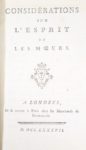 [SÉNAC DE MEILHAN (Gabriel)]. Considérations sur l'esprit et les mœurs. Londres, Et se trouve …
