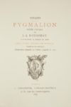 [BERQUIN (Arnaud)]. Pygmalion. Scène lyrique de J. J. Rousseau […] Suivi d'une Idylle par Mr.?Berquin. Paris, 1775. 2 titres en un volume in-4°, demi-maroquin citron à coins, double filet doré bordant les plats, dos à nerfs orné, tête dorée (reliure de l'époque).Réimpression textuelle faite sur l'édition originale de 1775.Un titre-frontispice gravé d’après MARILLIER et sept vignettes d’après MOREAU LE JEUNE.Tiré à 525 exemplaires, celui-ci (n° 360), un des 375 sur vergé de Hollande contenant, non justifiée, une suite supplémentaire des illustrations en bistre.