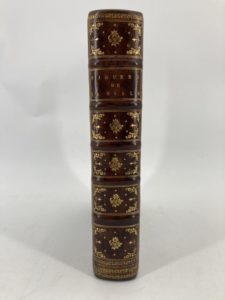 [BIBLE]. Figures de la Bible, contenues en cinq cens tableaux, gravés d'après les desseins de Raphael, & des plus grands Maître, accompagnés d'une courte Explication pour l'instruction de la Jeunesse […]. A Paris, Chez Claude Herissant, Imprimeur-Libraire, 1767. In-4°, veau, triple filet doré encadrant les plats, dos à nerfs orné (Abbaye de Maumont).500 figures gravées (328 + 172).Ne figure pas dans les Bibles imprimées.