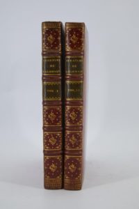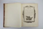 FÉNELON (François de SALIGNAC DE LA MOTHE-). Les Aventures de Télémaque. S. l. [Paris], De l’Imprimerie de Monsieur, 1785. 2 volumes in-4°, maroquin rouge, triple filet doré encadrant les plats, dos à nerfs orné, tranches dorées (Relié par Derome le jeune).Un titre-frontispice portant la date de 1773, 72 planches «?gravées d’après les desseins de Charles MONNET peintre du Roy par Jean Baptiste TILLIARD?» et 24 ornementations encadrant ou accompagnant le sommaire de chacun des titres composant l’ouvrage.Des bibliothèques Thomas Beverlld et Michel Rous-Spitz, avec ex-libris.Mouillures d'angle sur les premiers feuillets du tome I.« Belle édition » (Cohen, 384-385).