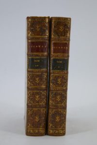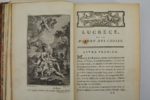 [LUCRÈCE]. Lucrèce, traduction nouvelle, avec des notes, par M. L* G** [LA GRANGE]. A Paris, Chez Bleuet, 1768. 2 volumes in-8°, veau, triple filet doré encadrant les plats, dos à nerfs orné (reliure de l’époque).Les faux-titres portent : De la nature des choses.Un titre-frontispice et six figures par GRAVELOT, gravées par BINET ; culs-de-lampe.« Belle édition » (Cohen, 664).