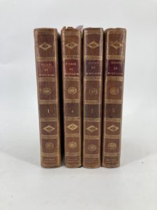 MONTAIGNE (Michel de). Essais. A Paris, De l’Imprimerie et de la Fonderie stéréotypes de Firmin Didot l’Aîné et de Firmin Didot, An X - 1802. 4 volumes in-8°, veau, fine roulette dentelée dorée encadrant les plats, dos lisse orné (reliure de l’époque).