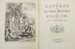 RÉGNIER (Mathurin). Les Satyres et autres œuvres. A Londres, Chez Lyon & Woodman, 1729. In-4°, …