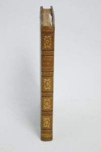 SALLUSTE. Conjuration de Catilina et guerre de Jugurtha. Traduites par Léopold de BOHM. Paris, F. G. Levrault, Libraire-Éditeur, 1826. In-8°, maroquin vert, large encadrement estampé à froid et doré ornant les plats, fleuron doré au centre, dos à nerfs orné, tranches dorées (Thouvenin).Des bibliothèques Wladimiri de Schoenefeld et Anatole Descamps, avec ex-libris.Dos passé, maisBEL EXEMPLAIRE DANS UNE RICHE RELIURE EN MAROQUIN VERT DE THOUVENIN.