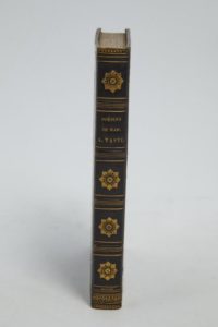 TASTU (Amable). Poésies. Paris, Ambroise Dupont et Cie, Libraires, 1827. In-12, veau violine glacé, filets dorés encadrant les plats, large décor estampé à froid au centre, dos à nerfs orné, tranches dorées (Thouvenin).