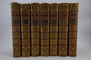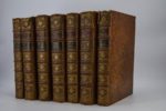 [TRÉVOUX (DICTIONNAIRE DE)]. • Dictionnaire universel françois et latin […]. A Paris, Delaune, Ganeau, Gandouin & alii, 1743 (6 vol.). •• Supplément au Dictionnaire universel françois et latin […]. A Paris, Par Compagnie des Libraires Associés, 1752. Ensemble 7 volumes in-folio, veau, dos à nerfs orné, pièces de titre en maroquin rouge (reliure de l'époque).De la bibliothèque J. P. Larcher, avec ex-libris.Quelques petits accidents et épidermures aux mors, coiffes et coins.
