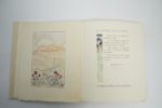 [CANTIQUE DES CANTIQUES]. Le Cantique des cantiques du Roi Salomon. Lausanne, Éditions Gonin & Cie, s. d. [1933]. Petit in-folio en feuilles, sous couverture illustrée, chemise et étui de l'éditeur.64 bois en couleurs par Jean BERQUE.Tiré à 119 exemplaires sur vélin de Hollande, celui-ci n° 56.EXEMPLAIRE ENRICHI D'UNE GRANDE AQUARELLE ORIGINALE SIGNÉE PAR JEAN BERQUE.Légères rousseurs sur le premier feuillet blanc.