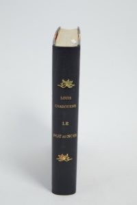 CHADOURNE (Louis). Le Pot au noir. Scènes et figures des Tropiques. A Paris, Chez G. et A.?Mornay, Libraires, 1922. In-8° carré, demi-chagrin noir à coins, dos lisse orné, tête dorée, couverture illustrée en couleurs conservée (reliure fin XXe s.).Bois gravés en couleurs par Pierre FALKÉ.Tiré à 1 077 exemplaires et quelques hors-commerce, celui-ci (n° 227), un des 200 sur hollande Van Gelder.