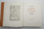 ÉRASME. Éloge de la folie. Traduction par Pierre de NOLHAC. À Paris, Éditions J. Terquem, 1927. In-4°, bradel, vélin ivoire, titre et large décor peint ornant le premier plat, tête dorée, gardes de moire rose, couverture conservée, chemise et étui (reliure fin XXe s.).Eaux-fortes dans le texte et hors texte par CHAS-LABORDE, dont un frontispice.Tiré à 130 exemplaires, celui-ci (n° 72), un des 109 comprenant une suite supplémentaire des eaux-fortes avec remarque.