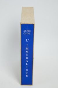 GIDE (André). L'Immoraliste. Paris, Éditions Albert Guillot, s. d. [1951]. In-4° en feuilles, sous couverture rempliée, chemise bleue et étui de l'éditeur.Bois en couleurs gravés par Gérard ANGIOLINI d'après CHAPELAIN-MIDY.Tiré à 330 exemplaires numérotés et quelques-uns de collaborateurs, celui-ci (n° 156), un des 164 sur vélin d'Arches.Quelques décharges.