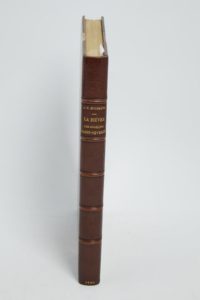 HUYSMANS (Joris-Karl). La Bièvre. Les Gobelins. Saint-Séverin. Paris, Société de Propagation des Livres d’Art, 1900/1901. In-4°, demi-maroquin brun à coins, dos à nerfs, non rogné, couverture conservée (reliure de l'époque).PREMIERE EDITION ILLUSTREE.Quatre eaux-fortes hors texte et 30 bois dans le texte par Auguste LEPÈRE.Tiré à 715 exemplaires, celui-ci (n° 224), un des 600 sur vélin à la forme.