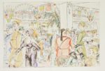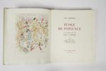 LABORDE (Guy). École de patience. La Guerre vue par Chas Laborde. Avec une évocation par Pierre MAC ORLAN. Monaco, À la Voile latine, s. d. [1951]. In-4° en feuilles, sous couverture illustrée, chemise et étui de l’éditeur.Cuivres en couleurs et bois d’après CHAS LABORDE.Tiré à 471 exemplaires, celui-ci (n° 9), un des 20 sur arches comprenant une suite supplémentaire des gravures et des bois, mais celle-ci est en déficit. XXXX