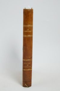 LA FONTAINE (Jean de). Les Amours de Psyché et de Cupidon. Paris, Georges Briffaut, Éditeur, 1932. Grand in-8°, demi-basane fauve à coins, filet doré bordant les plats, dos à nerfs, tête dorée, non rogné, couvertures conservées (reliure de l'époque).Illustrations en couleurs par CARLÈGLE.Tiré à 1 230 exemplaires, celui-ci (n° 4), UN DES QUINZE DE TÊTE SUR JAPON IMPÉRIAL A LA FORME contenant UNE AQUARELLE ORIGINALE (celle de l'illustration de la p. 37).