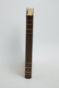 MAURRAS (Charles). Le Chemin de Paradis. Paris, A la Cité des Livres, 1927. Grand in-4°, maroquin vert kaki, larges bandeaux dorés ornant les plats, dos lisse, tête dorée, couverture illustrée conservée et étui (René Kieffer).Aquarelles par Paul-Élie GERNEZ.Tiré à 320 exemplaires, celui-ci (n° 200), un des 220 sur vélin d'Arches.Dos passé.