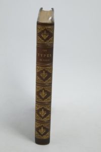 [PARIS]. Les Types de Paris. Paris, Éditions du Figaro, s. d. [1889]. Dix livraisons en un volume in-4°, demi-chagrin vert, double filet doré encadrant les plats, dos à nerfs orné, tête dorée, couverture illustrée en couleurs conservée (reliure de l'époque).Textes par Edmond de GONCOURT, Alphonse DAUDET, Émile ZOLA, Guy de MAUPASSANT, Paul BOURGET, Joris-Karl HUYSMANS, Stéphane MALLARMÉ, Octave MIRBEAU, Jean RICHEPIN, etc.Dessins par Jean-François RAFFAËLLI, certains rehaussés, dont plusieurs à pleine page.Dos passé.