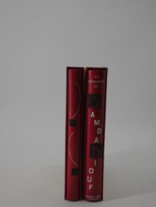THARAUD (Jérôme & Jean). La Randonnée de Samba Diouf. S. l., Aux Éditions Lapina, n. d. [1927]. 2 volumes in-4° (dont un pour les suites), chagrin rouge, décor mosaïqué ornant le premier plat, dos lisse également mosaïqué, couverture illustrée conservée, étui (Abbaye de Maumont).Dix-neuf pointes-sèches par Roger de VALERIO.Tiré à 400 exemplaires, celui-ci (n° 28), UN DES 21 SUR JAPON IMPÉRIAL contenant UN CROQUIS ORIGINAL (celui de l'illustration de la p. 19) et deux suites supplémentaires des illustrations.