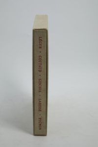 [THÉÂTRE]. PARMELIN (Hélène). Cinq peintres et le théâtre. Paris, Éditions du Cercle d'Art, s. d. [1956]. In-4° broché, couverture illustrée.Décors et costumes par LÉGER, COUTAUD, GISCHIA, LABISSE & PIGNON.UN DES 150 ET QUELQUES EXEMPLAIRES DE TÊTE SUR ARCHES, seul grand papier, celui-ci (n° 33), contenant une suite de quatre lithographies tirées sur arches et signées par COUTAUD, GISCHIA, LABISSE & PIGNON.