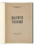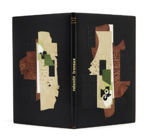 BRETON (André), CHAR (René), ÉLUARD (Paul) — Ralentir travaux. — [Paris], Éditions surréalistes, 1930. — Petit in-4 (27,6 x 18,5 cm), maroquin noir estampé d'un fin motif de croisillons, sur les plats décor abstrait mosaïqué de pièces...