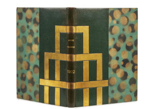 [BRULLER].- MAUROIS (André) — Deux fragments d'une histoire universelle. 1992. — [Paris], Paul Hartmann, 1929. — In-8 (24,8 x 18,4 cm), demi-maroquin vert bouteille, décor de larges entrelacs dorés mosaïqués courant sur le dos, dos lisse...