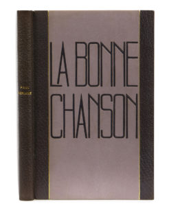 [DAVID].- VERLAINE (Paul) — La Bonne chanson. — [Paris], Creuzevault, [1936]. — In-8 (25 x 16 cm), demi-maroquin vert bronze à bandes, centre des plats constitué d'une bande de veau taupe bordée d'un filet doré, portant sur le plat...