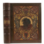 [DINET] — Antar. Poème héroïque arabe de temps antéislamiques. — Paris, Piazza, 1898. — In-4 (33 x 25,4 cm), maroquin vert, 2 grands cuirs incisés au décor orientalisant en camaïeux de marron, signés par Meunier, insérés dans les...