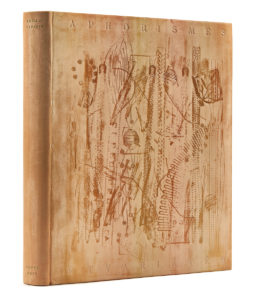 [DUFY].- BRILLAT-SAVARIN (Jean-Anthelme) — Aphorismes et variétés. — Paris, Bibliophiles du Palais, 1940. — In-4 (31,3 x 24 cm), monté sur onglets, veau ocre clair teinté dans les tons ocre-rose et ocre-jaune et poncé, sur les plats décor...