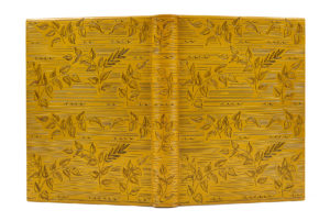 répétées également à froid, certaines palmes sont rehaussées à l'œser brun foncé, dos lisse muet, tranches dorées, large encadrement intérieur de box avec reprise du décor à froid, doublures et gardes de tabis brun foncé, couvertures et dos conservés, chemise et étui (Creuzevault). — 264 p., [2] ff.