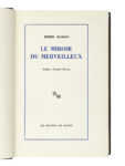 [ERNST, MIRÓ…].- MABILLE (Pierre) — Le Miroir du merveilleux. — Paris, Éditions de Minuit, 1962. — Fort vol. in-8 (24,9 x 16,3 cm), box bleu marine, sur les plats décor de bandes verticales en relief de box gris et bleu avec listel de veau...