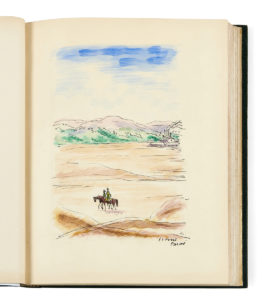Tirage limité à 115 exemplaires sur papier d'Arches, celui-ci le n° 47, enrichi de deux dessins originaux aquarellés, dont un signé et l'autre légendé " projet pour le cul-de-lampe final ".