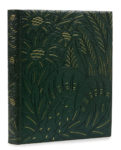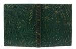 se prolongeant sur le dos muet, tranches dorées, large encadrement intérieur de maroquin vert foncé bordé d'un filet doré, doublures et gardes de peau velours vert sapin, couvertures et dos conservés, chemise et étui (Georges Cretté). — [3] ff., 205 p., [1] f.