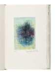 Tirage limité à 120 exemplaires numérotés ; l'un des 15 premiers (n° 9) accompagnés d'une suite des gravures. L'exemplaire est par ailleurs enrichi de deux des gravures (numérotées 50/90), visibles à travers les plats de plexiglas de la reliure, établie par Daniel-Henri Mercher, selon le modèle breveté par son père.