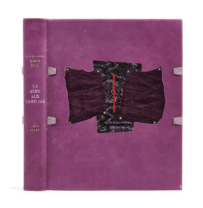 [ICART].- DUMAS FILS (Alexandre) — La Dame aux camélias. — Paris, Francis Guillot, [1938]. — Petit in-4 (28 x 21,9 m), box violine, sur les plats décor mosaïqué composé de pièces de veau violet foncé poncé en léger relief, soulignées...