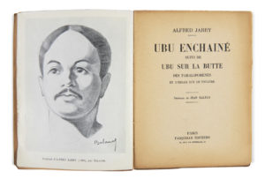 JARRY (Alfred) — Ubu Enchaîné. — Paris, Fasquelle, 1938. — In-12 (16,5 x 12,7 cm), broché, couverture imprimée et illustrée. — 185 p., [2] ff., 1 f. blanc.