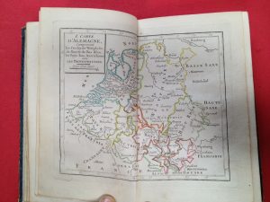 (GEOGRAPHIE / ATLAS). BRION DE LA TOUR « Atlas et table élémentaires de géographie ancienne et moderne ». A Paris, chez Barbou, 1787, in-8 reliure éditeur pleine papier bleu moucheté muet, dos lisse, (VI) pages, 98 colonnes de texte sur 26...