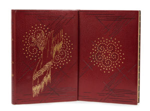 [LOBEL-RICHE].- REBOUX (Paul) — La Maison de danses. — Paris, Pour le compte des auteurs, 1928. — In-8 (27,2 x 18,6 cm), maroquin grenat, sur les plats décor de filets, fleurons et points dorés et filets à l'œser noir évoquant un châle de...
