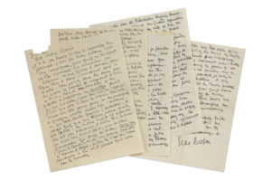 2 L.A.S., [ca. 1935, to Lucienne FAVRE]; 2 and 3 pages in-4 in grease pencil (small tear at the top of the 1st letter). — Beautiful letters to the novelist Lucienne FAVRE (1894-1958), bard of the working-class districts of pre-war Algiers. — Thursday evening. "I still have no news from the newspaper [Marianne]. I think their affairs are rather complicated, not that they don't know how to handle it"... He suggests that she send her writing to Emmanuel BERL, as recommended by Carlo RIM, "preferably a reportage rather than a news item (of which their marble is full). I think your spa story put in this easy form and accompanied by a few photos would do well - or on any other current issue. I hear there's Judeo-Arab tension in the Casbah?"... Rim also mentioned a certain Simonneau running the magazine Savez-vous, likely to pay well for news... "In truth, I think all these people are quite dismantled by events and above all concerned with living, in whatever way they can"... RAIMU, however, seemed quite interested in one of his plays, and he suggested talking to him about a film adaptation, "because he prefers filming to acting, and especially because the thing will be better on the screen than on the stage"... - Maupertuis. He thinks he will stay in Seine-et-Marne for a few more weeks: "I find a great well-being there: that of not thinking - at least of thinking outside myself - objectively, as the cutists say. It is a real rest"... He also tires of "agricultural and domestic work, and economic sports - I read little and work even less. I have managed to find a great nervous balance. [...] I think it was the wisest course to take, and the only reasonable goal to pursue in the historical but rather absurd times in which we live. To try to foresee the future, to play with imponderables and to take advantage of this absurdity requires either a great deal of candor, or a natural dishonesty which I lack"...
