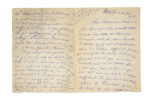 L.A.S. "G. de Chirico", Rome 14 May 1955, to Marcello ANCHORENA ; 4 pages in-8 (paper creased, creases repaired). — Armand NAKACHE wrote to him "that it is customary in the official French Salons to exhibit the works of a living French painter only with his consent and collaboration", but his lawyer assures him that this is not enough : "It would be necessary to have a declaration from the President of one, or two of the oldest artistic Societies of the official Salons of Paris, in which declaration the said President also cites the article of the regulations (with the number of the article), so that it is quite clear that according to article number ... of the rules of the Société Nationale des Artistes Français (it is, I believe, the oldest), the works exhibited are requested from the artists by invitation etc.". It is certain that there is an article stipulating that the Salon does not have the right to exhibit the works of a French artist "without his knowledge, and by going to collect the works from collectors or dealers. [It's incredible how difficult it is to get what I want. He had already, a few years earlier, tried to obtain these documents "for me so necessary ; but I only got things on the side. - And yet it seems so simple. [Why is it so difficult to get what I want ?